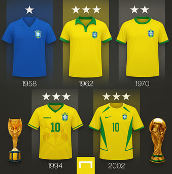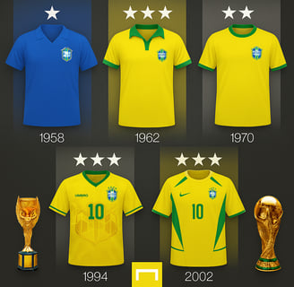 A nova camisa brilhou intensamente logo em 1958, na Suécia, quando o Brasil venceu sua primeira Copa do Mundo com Pelé, Garrincha e companhia. O design era simples, com gola verde e o escudo da CBD no peito.